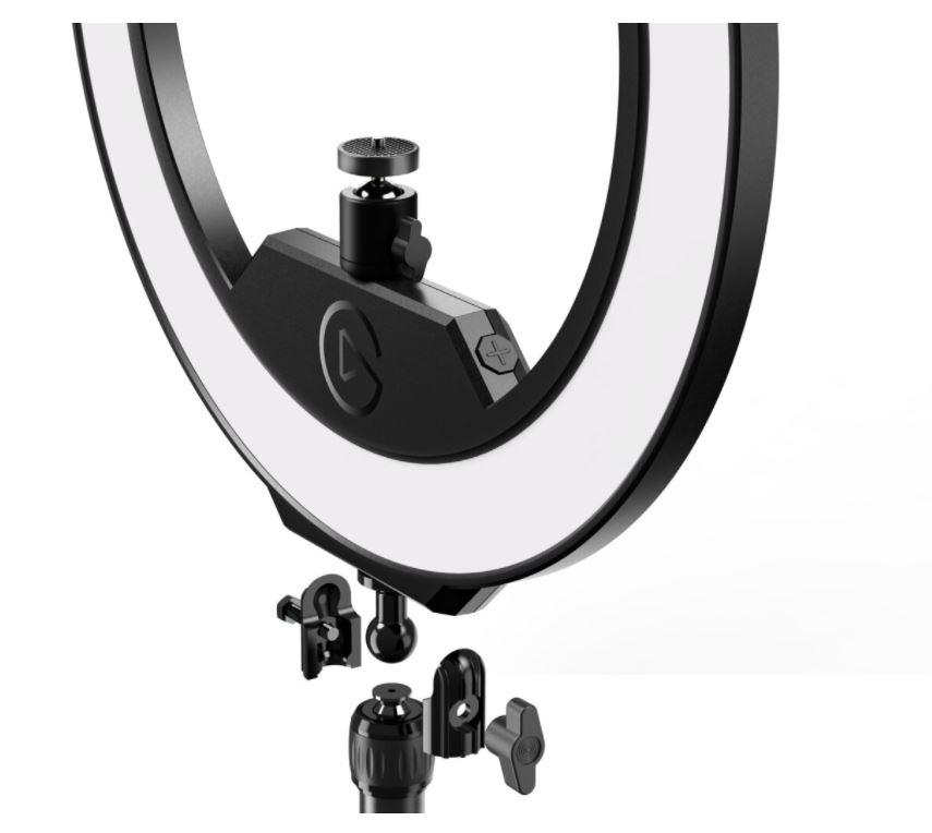 Kruhové světlo s podporou WLAN se středovým upevněním kulového kloubu, je skvělou pomůckou pro dokonalé nasvícení při natáčení videí. Obsahuje prémiové LED diody s okrajovým osvětlením s barevnou škálou 2900 - 7000K. Snadno se polohuje, ovládá se z aplikace nebo pomocí Siri. *Kulový kloub 1/4 *2 500 lumenů *Nastavitelná teplota barev *Připojení WLAN 2,4 GHz / 5 GHz *Teleskopická tyč s upínáním stolu nastavitelným od 44 do 74 cm *Napájecí zdroj v balení