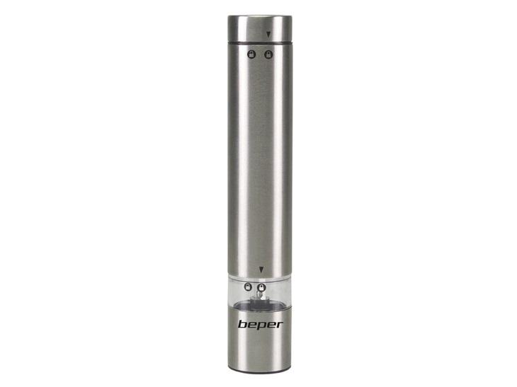 mlýnek na sůl a pepř, průhledná nádoba,materiál nerez keramické čepele, tlakový provoz, nastavitelná hrubost mletí, bateriový provoz 4x AAA, rozměry 3 x 3 x 17,5 cm