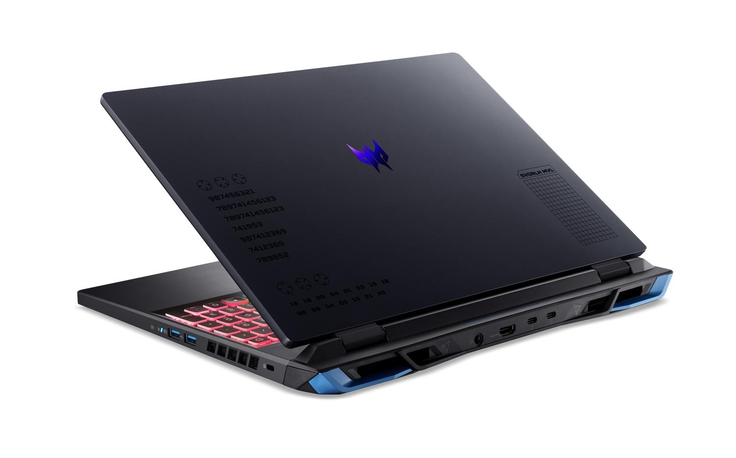 Model: Acer Predator Helios Neo 16 (PHN16-71) Operační systém: Windows 11 Home Procesor: Intel Core i9-13900HX (24C, 36 MB Cache, 2.20 GHz, up to 5.40 GHz) Paměť: 32 GB (16 GB DDR5 5600MHz Memory + 16 GB DDR5 5600MHz Memory)Počet slotů (celkem/volných): 2/0 Maximální velikost: 32 GB Pevný disk: 1024GB PCIe NVMe SED SSD PMP4 + N (M.2 SSD) Rozšiřující sloty pevného disku: 1x M.2 SSD Optická mechanika: ne Displej: 16" WQXGA 2560x1600 16:10 IPS Anti-Glare 165Hz sRGB100% 500nits Support DDS Grafická karta: NVIDIA GeForce RTX 4060 8G-GDDR6 (2C*512*16*4) 16Gbps 1585MHz MGP 140W Polohovací zařízení: TouchPad Podsvícená klávesnice: ano (4zónová RGB) Numerická klávesnice: ano Web kamera: HD USB TNR Čtečka otisku prstů: ne Síť: Gigabit Ethernet Bezdrátová komunikace: Wifi 6 Intel 802.11ax 2x2 + BT 5.1 Killer 1650i USB: *2x USB Type-C port supporting: USB 3.2 Gen 2 (up to 10 Gbps) / DisplayPort over USB-C / Thunderbolt 4 / USB charging 5V; 3A / DC-in port 20 V; 65 W *2x USB 3.2 Gen2 *1x USB 3.2 Gen1 Další konektory: *1x HDMI 2.1 *1x RJ-45Čtečka paměťových karet: ano Baterie: 90 Wh, Li-ion Napájení: 330W 5.5phy AC adapter Barva: Obsidian Black Rozměry: 360.1 x 279.9 x 28.25 mm Hmotnost: 2,60 kg Záruka: 2 roky