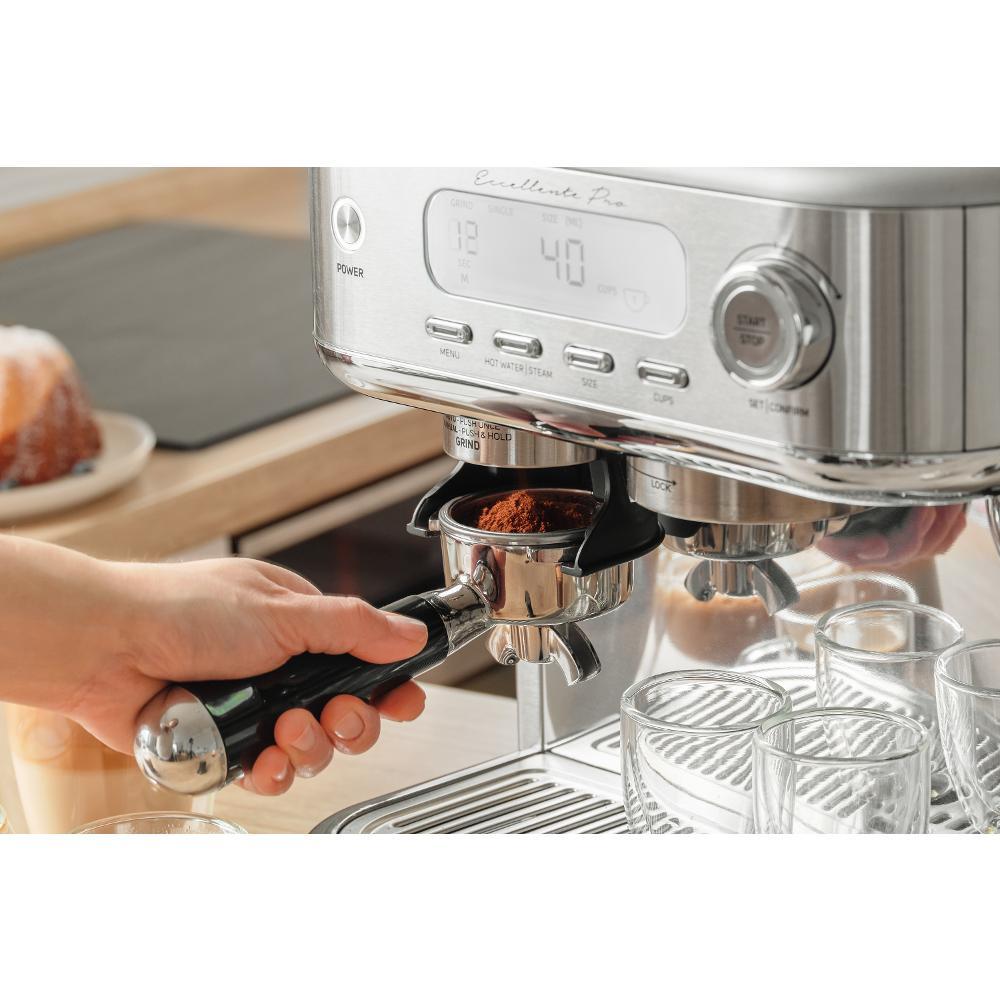 Příslušenství: Držák filtru - páka, odměrka, 2 filtry (pro 1 a 2 šálky), konvička na mléko, čisticí sada, tamper - pěchovadlo