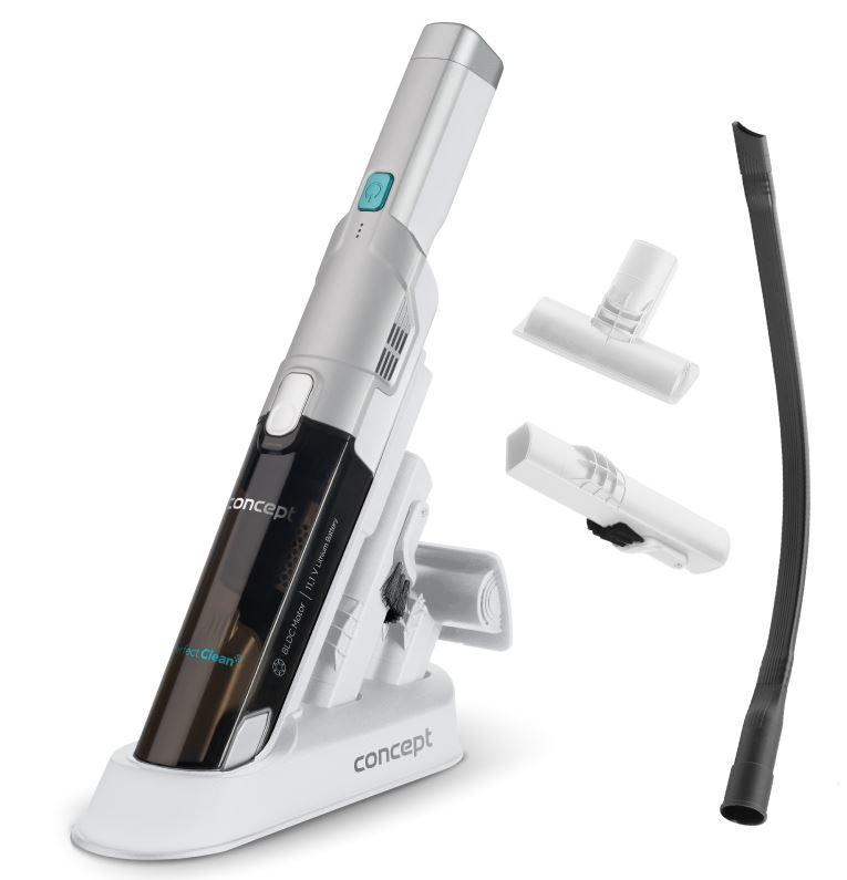 Kompaktní ruční vysavač Concept VP4420 v elegantním designu vyniká špičkovým sacím výkonem a praktickým příslušenstvím pro rychlý a efektivní úklid v domácnosti i v autě.