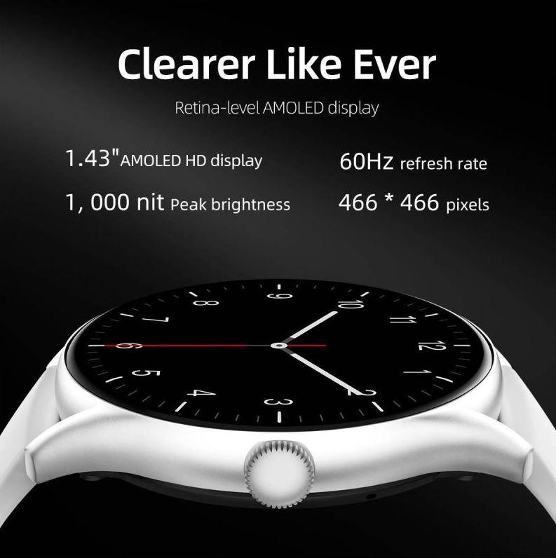 AMOLED, rozlišení 466 x 466, obnovovací frekvence 60 Hz