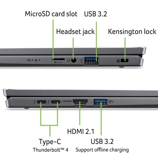 - 2x USB Type-C port supporting: USB4 40Gbps / DisplayPort over USB-C / Thunderbolt 4 / USB charging 5 V; 3 A / DC-in port 20 V; 100 W with USB Type-C docking support