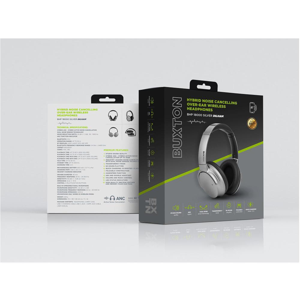 Bezdrátová sluchátka BUXTON BHP 18000 SILVER DILHAM, stříbrná