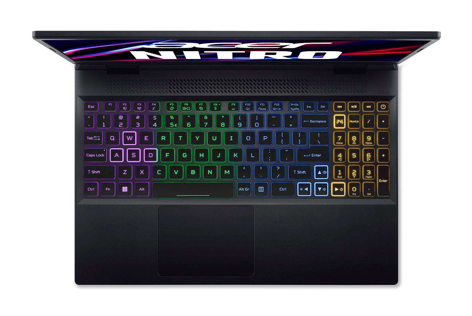 Buďte výjimeční díky čtyřzónové klávesnici RGB a ovládejte vnitřní fungování notebooku pomocí speciální klávesy NitroSense. Klávesy WASD a šipky jsou také podsvícené, aby byly během klíčových okamžiků lépe vidět.