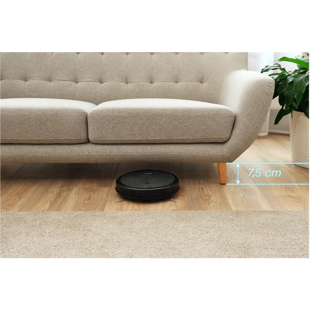 Robotický vysavač Sencor SRV 3160TQ EasyClean+ se postará o důkladný úklid podlah v celé domácnosti. K ovládání vám poslouží jediné tlačítko přímo na přístroji nebo dálkový ovladač. Pohodlné pokročilé nastavování zajišťuje mobilní aplikace Sencor Home, díky které můžete vysavač ovládat i mimo váš domov. Perfektní čistotu a lesk má na starost rotační kartáč a dva boční kartáčky, přičemž se můžete těšit na funkci vysávání a mopování najednou. Kompaktní rozměry s výškou pouhých 7,5 cm poskytují snadný pohyb v menších prostorech, kolem překážek i pod nábytkem. O inteligentní pohyb a efektivní výsledky se postará funkce Sencor Smart Room.