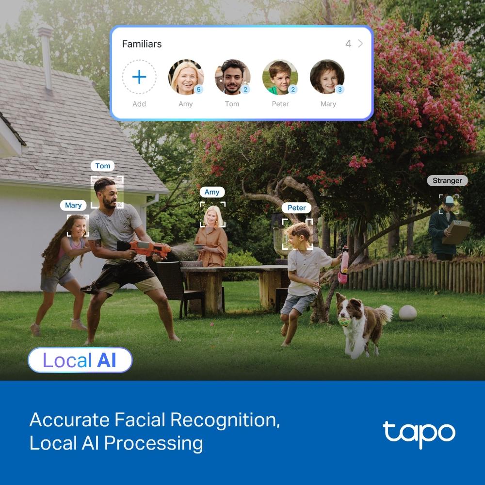 - Lokální rozpoznávání obličeje: Kamera se může pochlubit bezplatným a výkonným systémem Al, který rozpoznává a označuje cizí osoby, rodinu a přátele pro snadnou identifikaci.