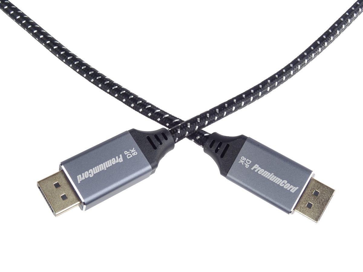 PremiumCord DisplayPort 1.4 přípojný kabel M/M pro rozlišení 8K, kovové krytky a zlacené konektory, 2m