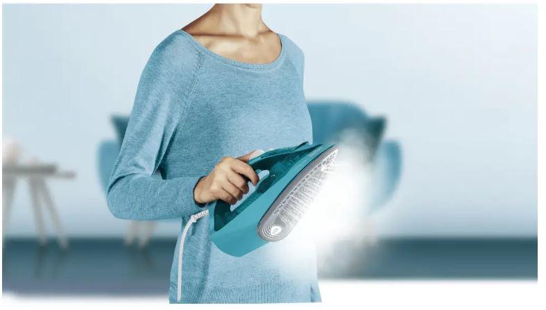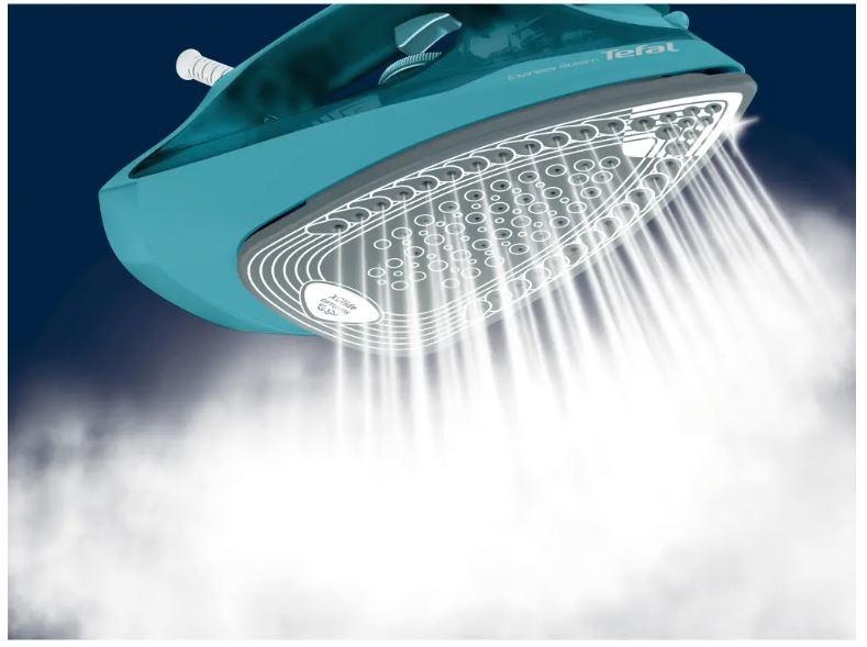 Tyrkysová napařovací žehlička TEFAL FV2867E0 je pro efektivní žehlení vybavena parním rázem až 200 g/min a výkonem 2 500 W, který umožňuje rychlé nahřátí. Express Steam zaručuje vylepšené funkce a vyšší výkon páry, což dělá žehlení rychlejší a snadnější. Má keramickou žehlicí plochu, která je vysoce odolná a hladce klouže po oděvech. Samozřejmostí je funkce automatického vypnutí, díky které můžete být v klidu i v případě, že byste ji sami zapomněli vypnout.