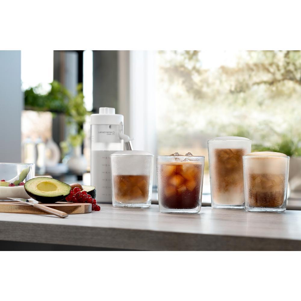 Technologie LatteCrema je skutečným srdcem kávovaru De'Longhi Eletta Explore ECAM450.55.G. Tento inovativní systém dokáže vytvořit krémově nadýchanou mléčnou pěnu s ideální strukturou pro každý nápoj – ať už si přejete horké cappuccino nebo osvěžující ledové latte. Kávovar je vybaven 2 samostatnými karafami, z nichž každá má specifickou funkci. Karafa LatteCrema Hot připraví mléko ve 3 stupních napěnění (od jemně ohřátého až po hustou pěnu), zatímco karafa LatteCrema Cool je určena pro přípravu studených mléčných nápojů. Obě nádoby se snadno vkládají i vyjímají a jsou vybaveny automatickým systémem čištění. Technologie akceptuje nejen klasické kravské mléko, ale také alternativy jako mandlové, sójové či ovesné.