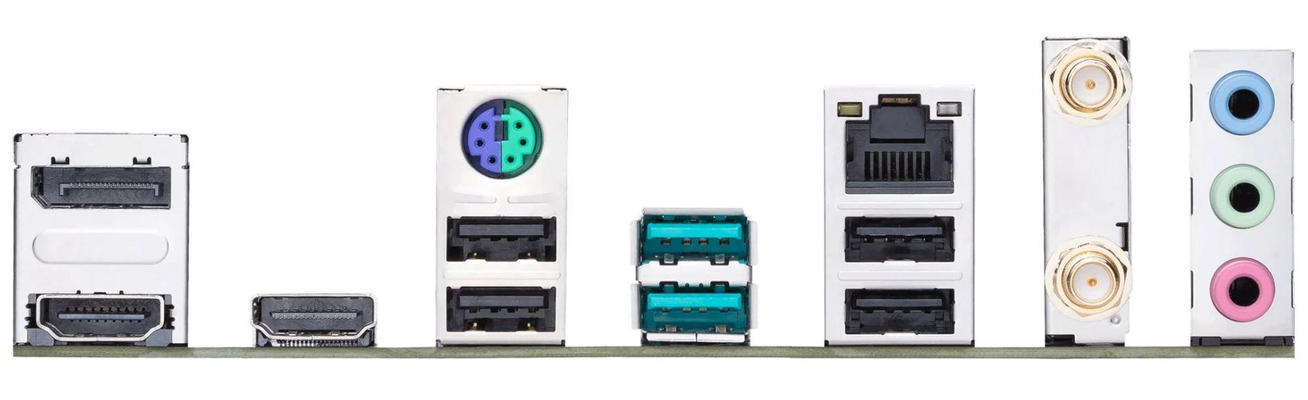 USB 2.0 port (4 porty na zadním panelu, 5 portů dostupných přes interní