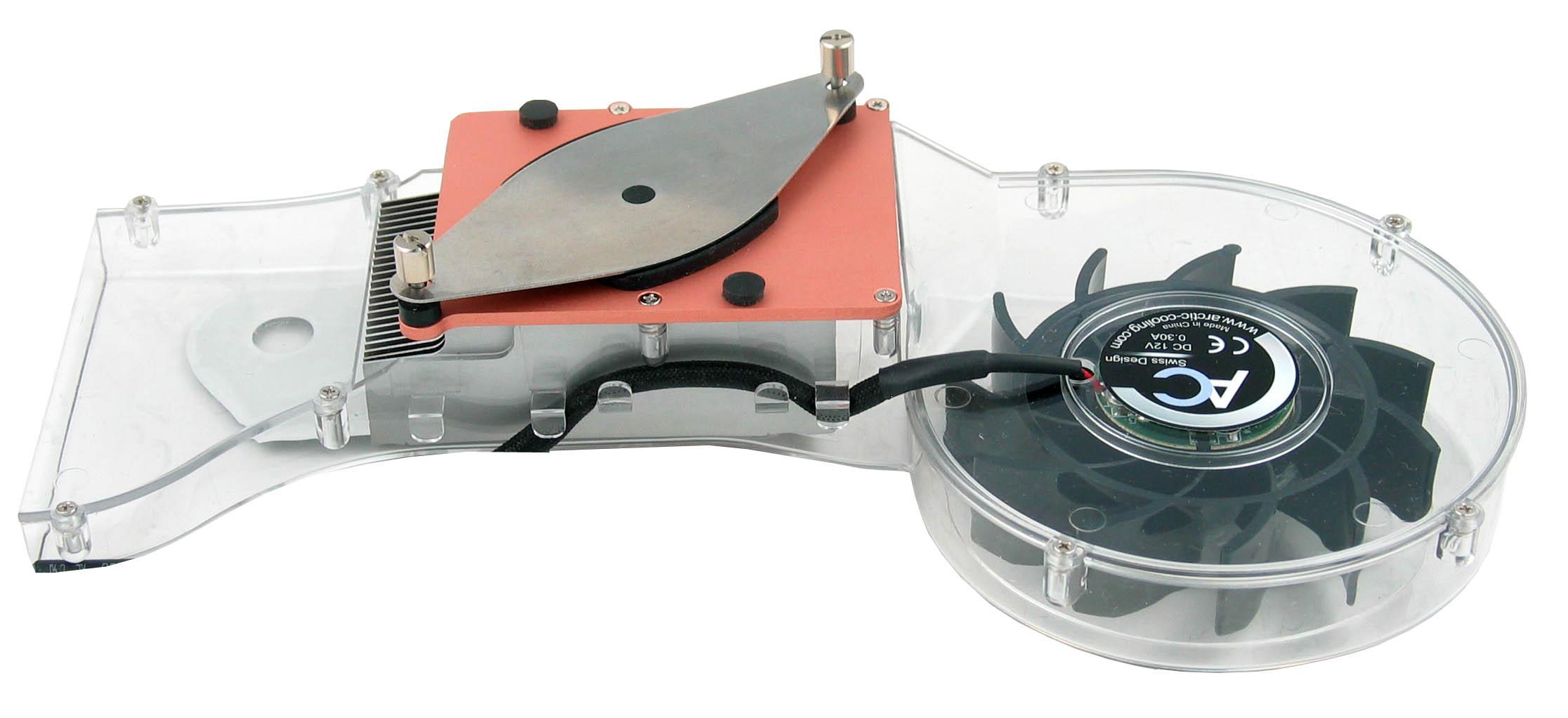 Vysoce účinný a extra tichý hliníkový chladič s měděnou základnou, který je určený pro grafické karty nVidia GeForce FX 5700 (AGP 8x) a nVidia GeForce 6200 / 6600 (GT) (PCI Express). Měděná základna pokryje jak paměti, tak i celý čip. Dostatečně velký ventilátor s 1500ot./min. je vybaven keramickými ložisky, která zaručují jeho dlouhou a bezproblémovou funkčnost. Ventilátor je napájen pomocí konektoru přímo na grafické kartě.
