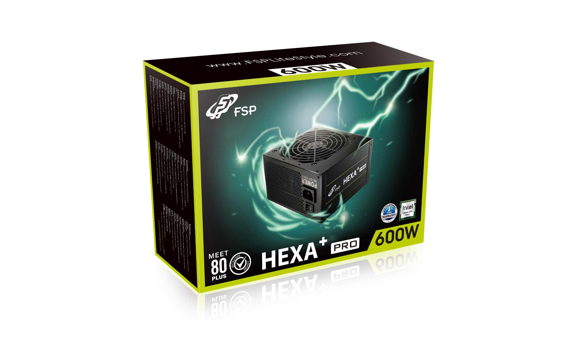 Řada Hexa+ PRO plně vyhovuje standardu ATX12 v2.4 a EPS 12 v2.92 a nejnovějšímu bezpečnostnímu předpisu EN 62368. Je vybaven černými kvalitními plochými kabely, které poskytují vašemu systému stylový a uklizený vzhled. Řada Hexa+ PRO se vyznačuje výkonnou konstrukcí jedné +12V větve, která poskytuje stabilní výkon. Design DC-DC je také nezbytný pro většinu hráčů, aby byla zajištěna energetická účinnost a bezpečnost. Řada Hexa+ PRO díky své konstrukci ventilátoru pro regulaci teploty může snížit hladinu hluku na minimum, což většina fanoušků velmi preferuje.