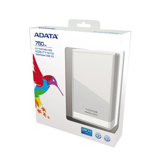 ADATA NH13 2,5" externí pevný disk nabízí velkou úložnou kapacitu a elegantní design. Nejnovější USB 3.0 SuperSpeed rozhraní poskytuje skvělý výkon a potřebnou rychlost pro zálohování vašich souborů.