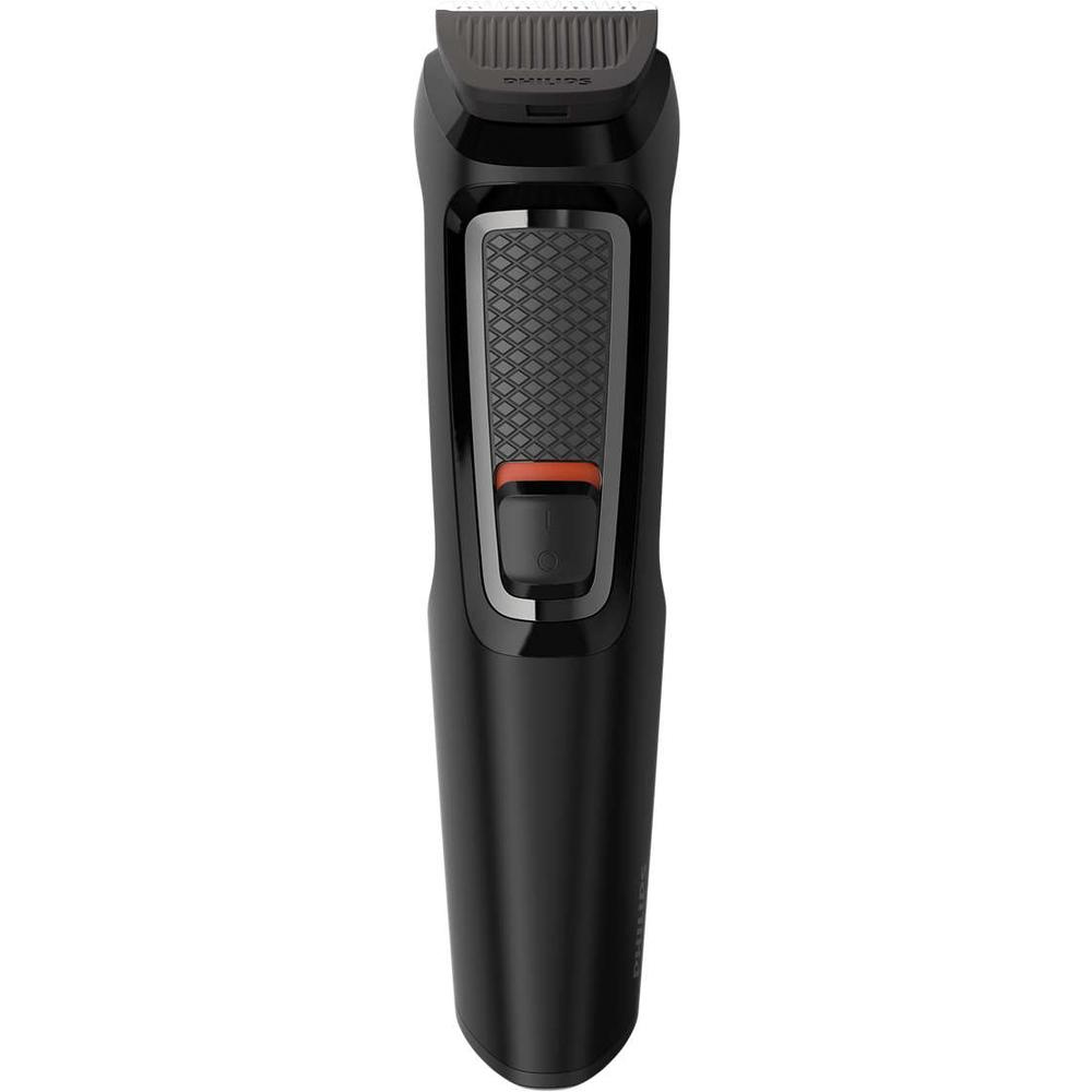Multifunkční el. zastřihovač Philips řady 3000 7v1: 4 nástavce pro zastřihování vousů - 1, 2, 3 a 5 mm; nástavec pro zastřihování vlasů 9 mm; nástavec pro zastřihování chloupků v nose a uších, doživotně ostré samoostřící čepele, Výdrž: 60 minut, barva: černá, příslušenství: cestovní pouzdro.