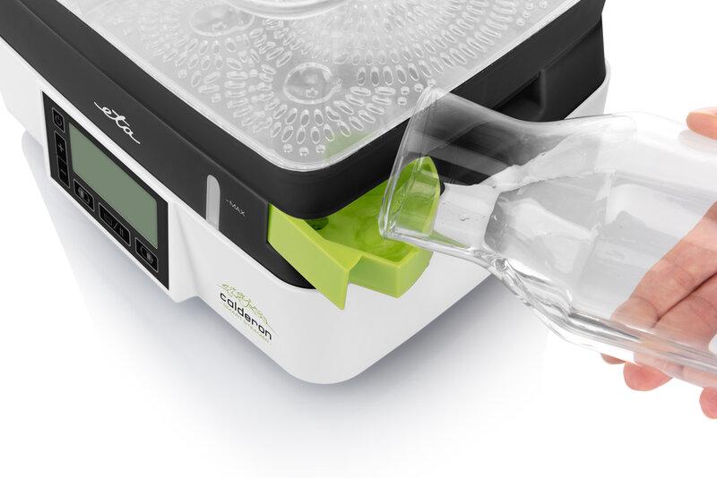 Sestavení hrnce ETA Calderon II je snadné, stejně jako jeho používání. Ukazatel vám prozradí aktuální množství vody – v případě potřeby ji jednoduše a bezpečně doplníte z vnější strany hrnce. Kondenzovaná vodní pára je zachytávaná do integrované odkapní misky.