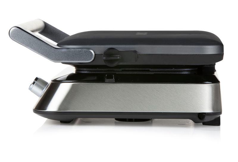 Design vaflovače pak jde ještě dále a to jak ve smyslu vaší bezpečnosti při pečení vaflí: tepelně izolované tělo přístroje a zapuštěné pečící desky, tak i v pohodlí používání přístroje díky velkému nerezovému madlu, nebo širokému kanálku kolem pečící desky pro případ přetečení těsta. Výškově plovoucí pant víka pak umožní i více nakynutému těstu vytvořit perfektní vysokou vafli.