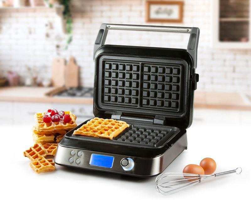 Domácí vaflovač se kterým zvládne upéct vafle jako profesionál úplně každý. Díky digitálnímu ovládání s přehledným velkým LCD displejem vždy víte jaký program jste zvolili a za jak dlouho a jak hodně budou vafle opečené. Digitální vaflovač využívá vnitřního termostatu ke korekcím vhodné teploty právě dle zvoleného programu a stupně opečení, aby výsledek byl vždy dokonalý. Vlastní program pak umožňuje vlastní nastavení stupně opečení (teploty pečení) bez omezení doby pečení. Digitální hodiny vás pak neustále informují o uběhlém, nebo zbývajícím času.