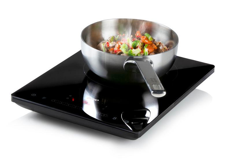 Snadno přenosný indukční vařič s jednou plotýnkou pod sklokeramickou deskou. Dotykové ovládání integrované přímo do sklokeramické desky umožňuje nastavovat stupeňe výkonu od 400 W až do 2000 W, dobu vaření až na 3 hodiny a hlídání teploty od 60 do 240 °C. Veškeré nastavené hodnoty pak přehledně zobrazuje integrovaný LED displej. Indukční plotýnka sama rozpozná vhodné nádobí a v případě použití jiného nádobí se sama vypne. Stejně tak se umí plotýnka sama vypnout a dochladit po sundání nádobí, nebo po uplynutí nastaveného času vaření.