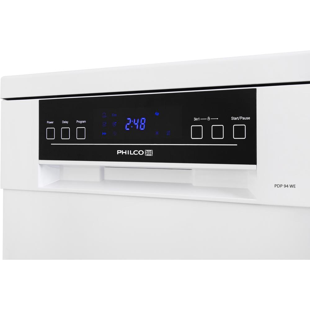 Volně stojící myčka nádobí Philco PDP94WE o šířce 45 cm, pojme 9 sad