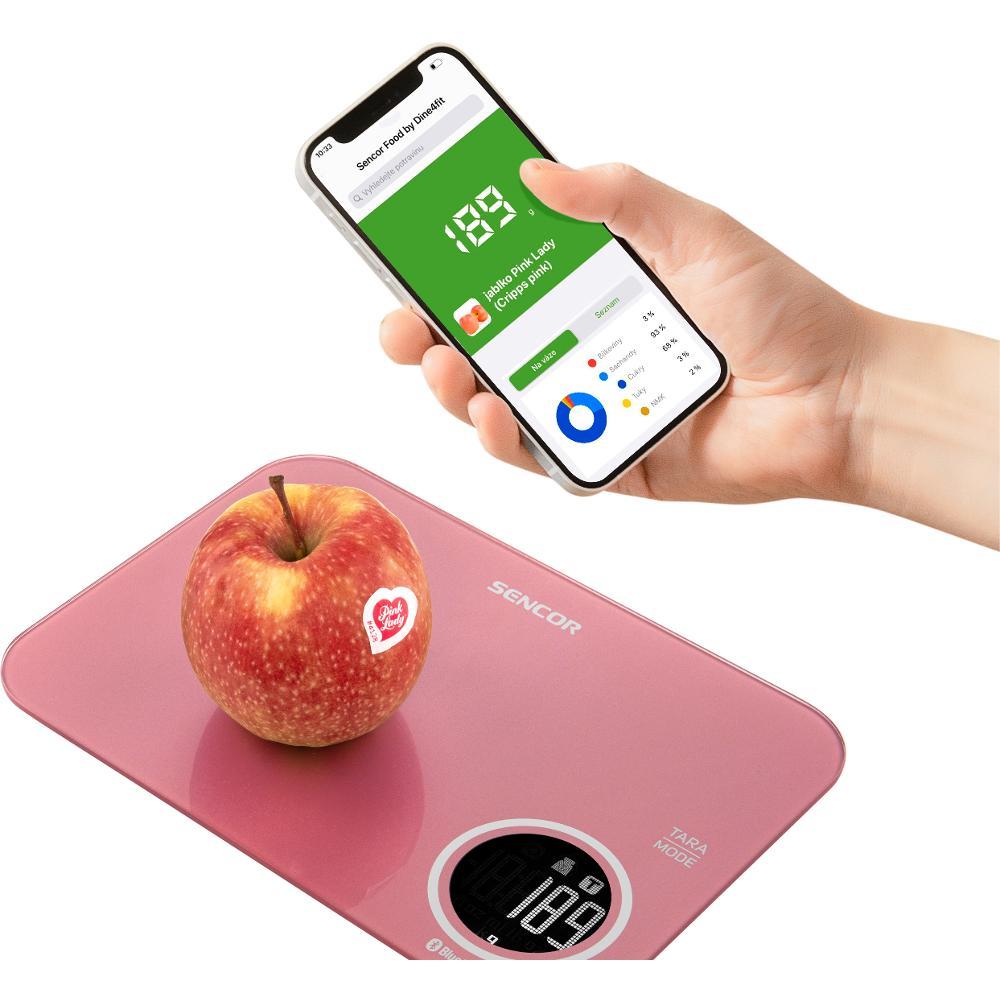 Sencor FOOD je provázána s aplikací Kalorické tabulky. Na konci vážení si