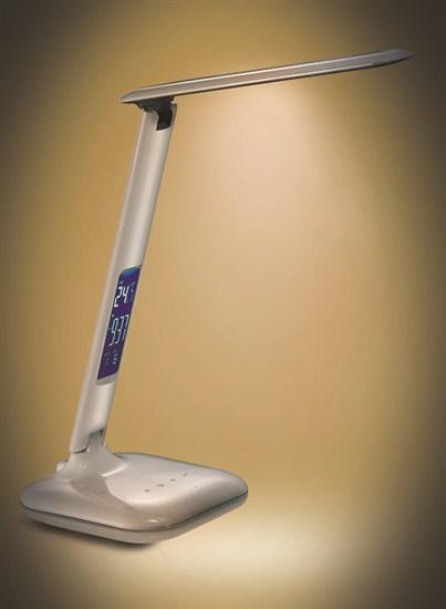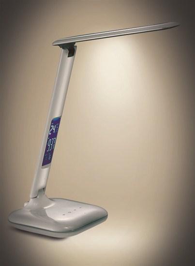LED stolní lampa stmívatelná s displejem SOLIGHT WO43, bílý lesk