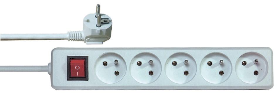Prodlužovací přívod, 5 zásuvek, bílý, vypínač, 1,5m