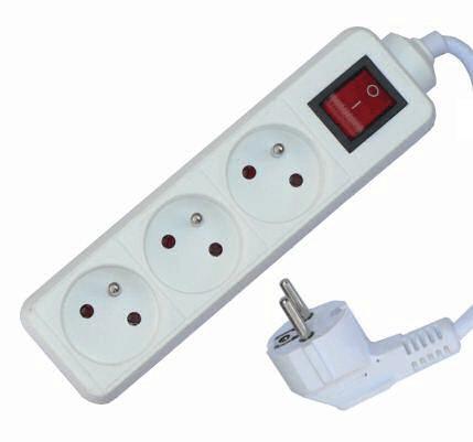 Prodlužovací přívod, 3 zásuvky, bílý, vypínač, 5m