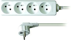 Prodlužovací přívod, 4 zásuvky, bílý, 3m
