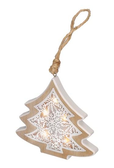 LED vánoční stromek, dřevěný dekor, 6LED, teplá bílá, 2x AAA