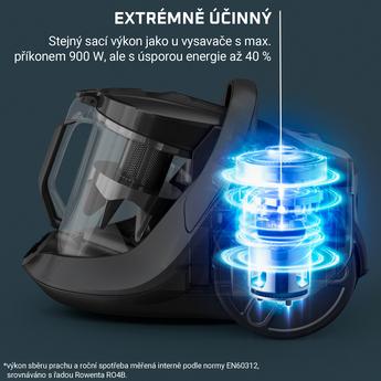 Stejný výkon jako vysavač Rowenta o příkonu až 900 W a zároveň zvláště nízká spotřeba s motorem Effitech®, který ušetří až 40% energie.
