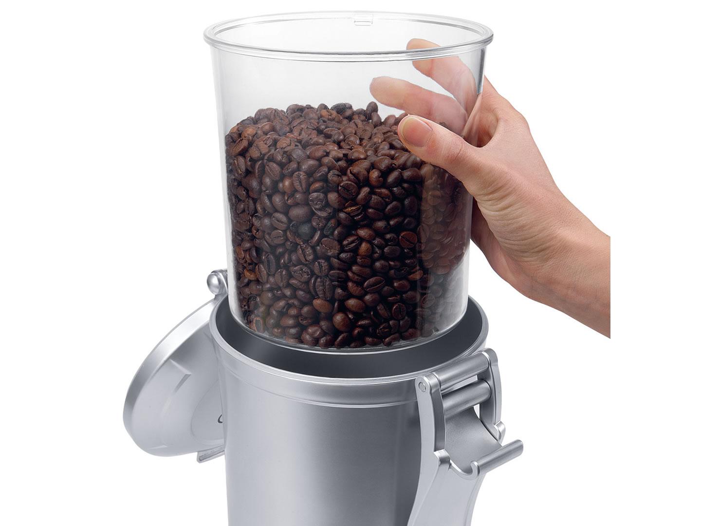 Dóza na zrnkovou kávu DELONGHI DECC 500, stříbrná (silver)