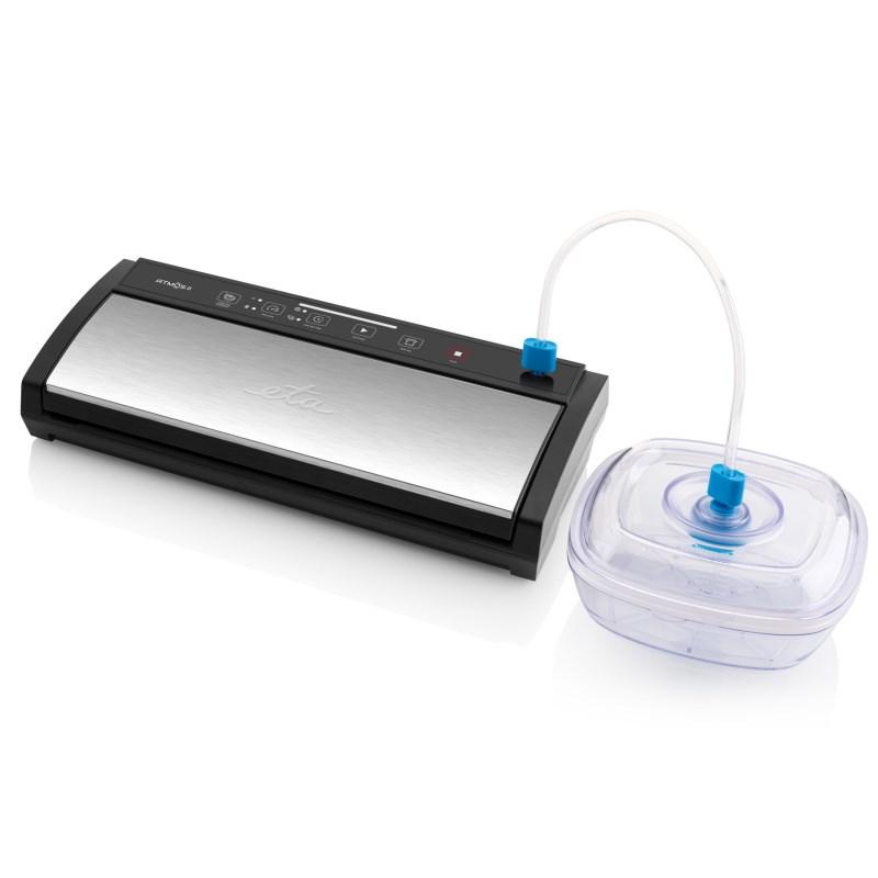 Hledáte způsob, jak prodloužit trvanlivost potravin a zamezit tak plýtvání? Svářečka folií ETA Atmos II vám v tomto bude ideálním parťákem. Je plně automatická – uzavřením pevně zajistí fólii, odsaje vzduch a zataví spoj jednolitým a silným svárem. Síla odsávání je max. -0,8 barů.