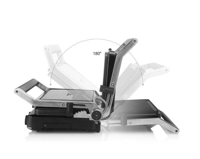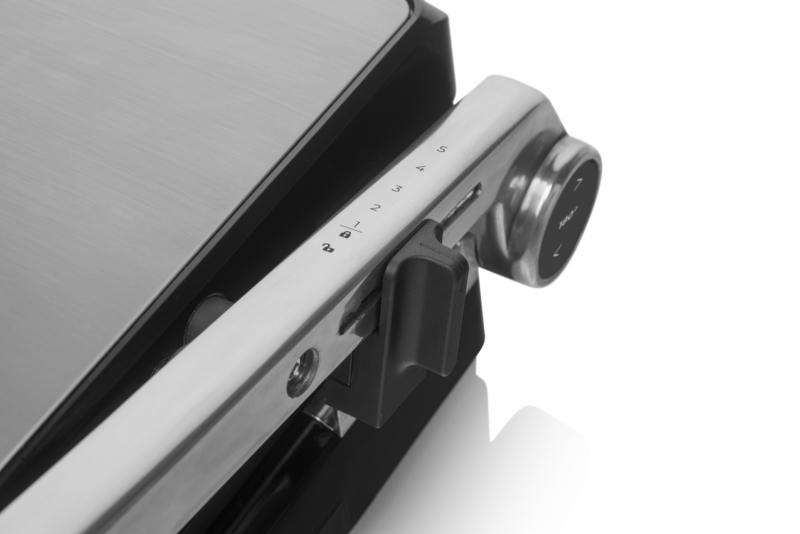 Vrchní desku lze nadzvednout v 5 úrovních. Snadno tak ugrilujete na tenko nakrájenou zeleninu, pořádný kus masa i oblíbený grilovaný sýr. Teplotu si nastavíte pomocí dvou otočných koleček a díky světelným kontrolkám budete mít stále přehled o všem, co se děje.