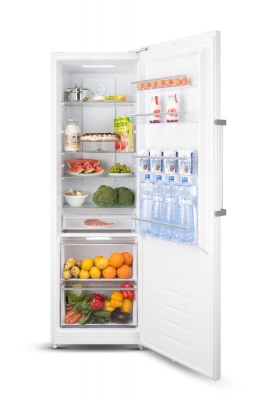 Prostor chladničky rozdělují 3 skleněné police z bezpečnostního skla, díky kterým budete mít vždy přehled o všech surovinách, 2 objemné transparentní šuplíky vám zase poslouží na uchovávání ovoce a zeleniny. Lednici nechybí ani FRESH zóna pro uchovávání čerstvého masa a ryb. Úložný prostor doplňují 4 praktické přihrádky na dveřích, které jsou vhodné na uchovávání mléka či studených omáček.