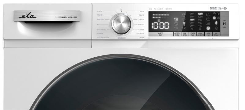 Pračka ETA 3553 90000B vyniká digitálním invertorovým motorem s dlouhou životností. Dosahuje rychlosti až 1200 otáček za minutu, zatímco se pyšní úspornou energetickou třídou B. Díky hloubce pouhých 49,7 cm najde své místo i v menších koupelnách, a přesto se spolehlivě postará až o 7 kg prádla najednou.