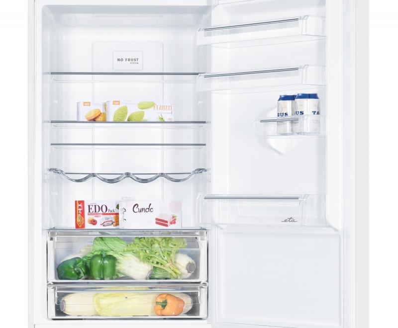 Moderní a praktická kombinovaná chladnička ETA bude královnou každé kuchyně. Se svým velkorysým celkovým objemem 347 litrů se pohodlně postará o jídlo celé rodiny. Svou spotřebou však do rodinného rozpočtu nezasáhne. Energeticky je chladnička zařazena do úsporné třídy C.