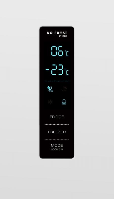 Chladnička kombinovaná, N, SN, ST, T, mrazící kapacita 6kg/24hod, hlučnost 39dB, Nofrost, displej
