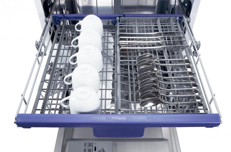 Praktické LED ukazatele vás upozorní na nedostatek soli, nedostatek leštidla či a budete mít přehled i o zvoleném programu. Uvnitř myčky najdete samostatnou příborovou zásuvku, výškově nastavitelný horní koš a sklopné přihrádky na talíře.