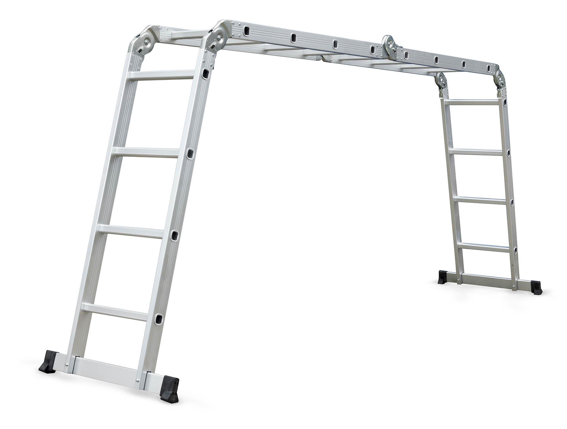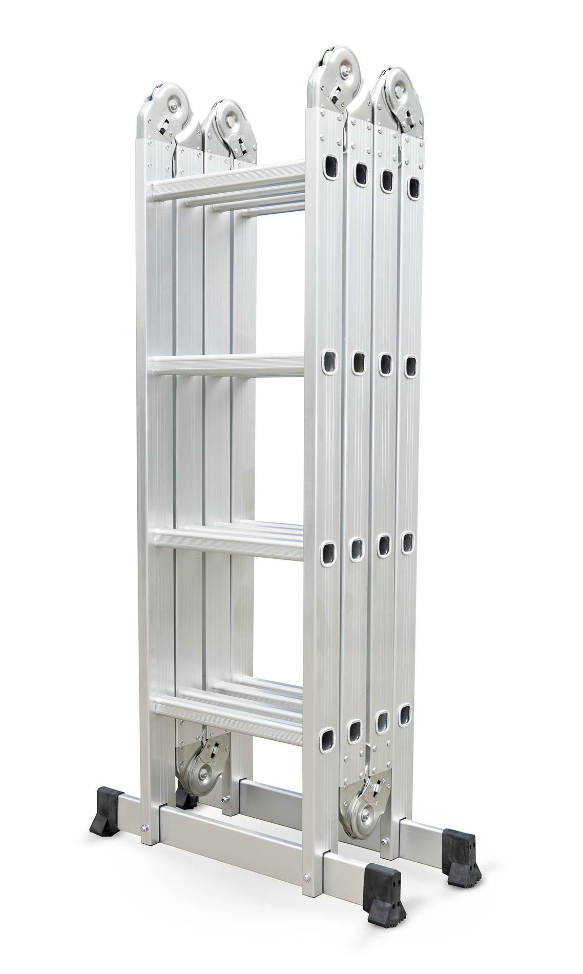 Hliníkové štafle můžete využít jednak jako dlouhý žebřík v délce až 4,6 m. Další variantou je možnost sestavit štafle jako přenosné lešení. Díky konstrukci s klouby lze štafle snadno umístit přes hřeben střechy.