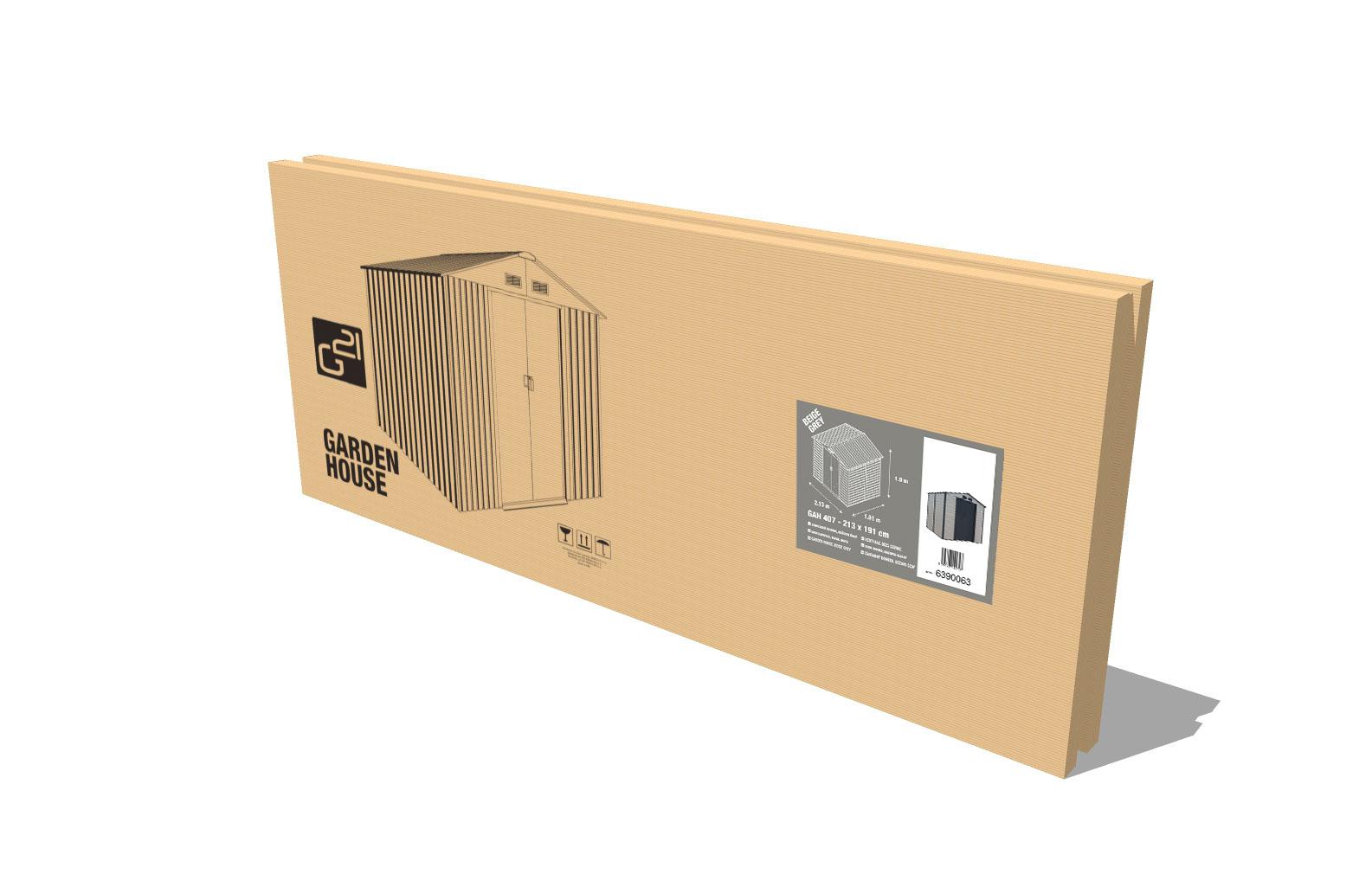 Zahradní domek G21 GAH 407 je vyroben z kvalitního profilovaného ocelového plechu tloušťky 0,25 – 0,30 mm. Povrch je pozinkovaný a má práškový nástřik. Jeho ocelová konstrukce je pozinkovaná a je opatřena ventilačními mřížkami.