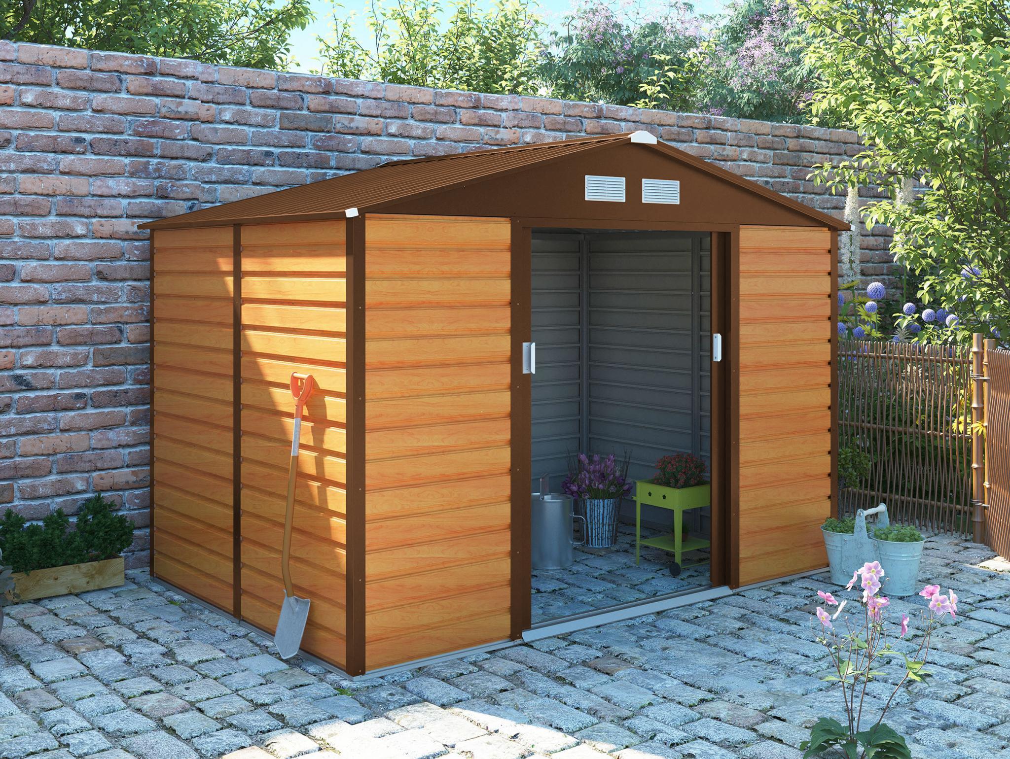 Plechy zahradního domku jsou opatřeny kvalitním nástřikem v dekoru dřeva, proto se nemusíte bát, že plechový domek nenaruší přírodní ráz vaší zahrady. V domku G21 se snoubí tradiční přírodní design s moderními kvalitními materiály. Proto bude domek krášlit vaši zahradu po dlouhá léta, aniž by na něm čas zachoval nějaké stopy.