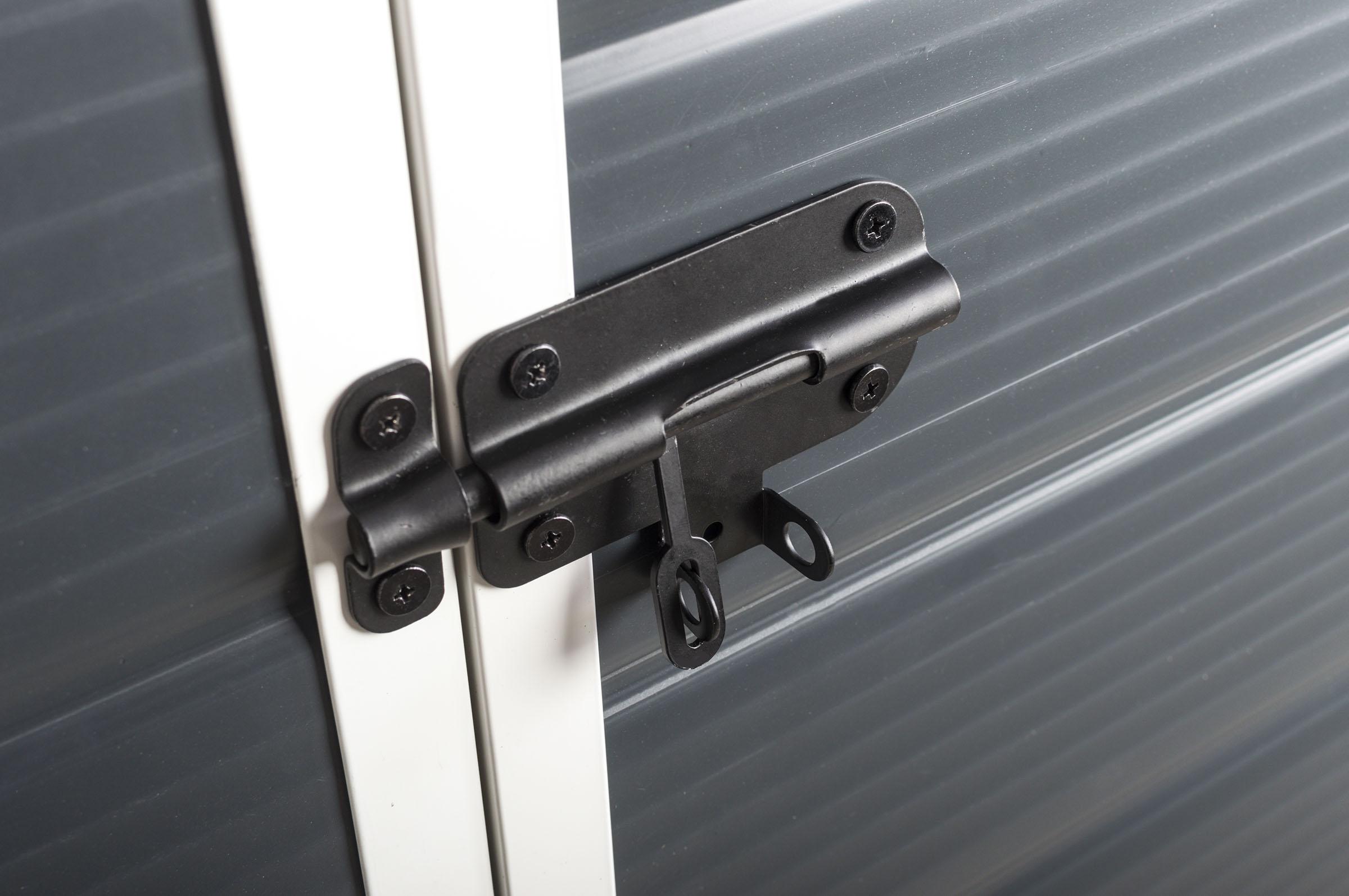 Nad dvoukřídlými dveřmi je umístěna ventilační mřížka, která zajišťuje dostatečné odvětrávání a cirkulaci vzduchu uvnitř domku. Proto se nemusíte bát plísní nebo srážení vody na stěnách v případě náhlých změn teploty.