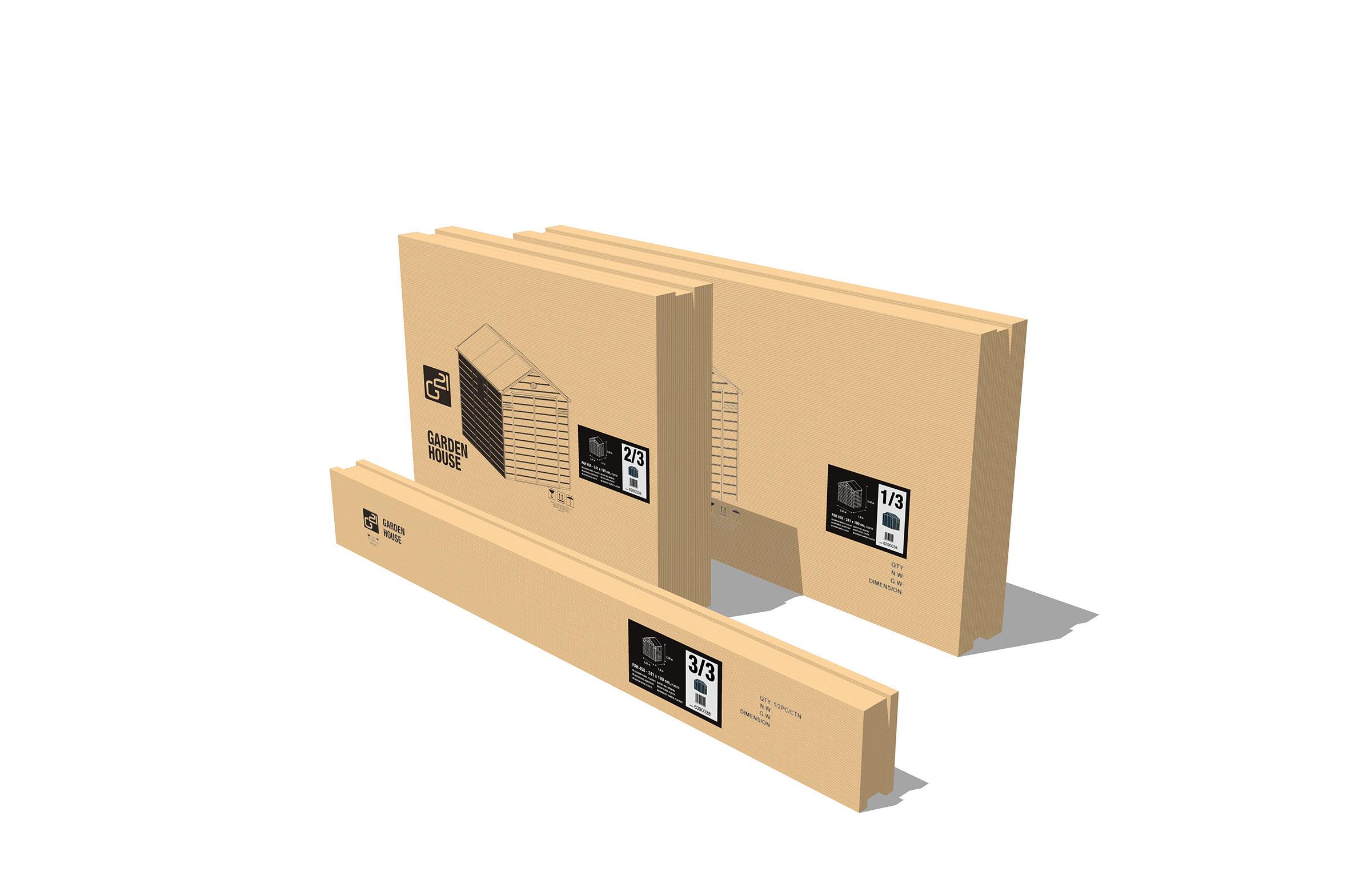 Konstrukce zahradního domku G21 se skládá z pozinkovaného plechu, plastových sloupků o síle materiálu 1,5 mm a vnějších panelů o síle 12 mm. Panely jsou vyrobeny ze sendvičového tvrzeného plastu. Střecha zahradního domku je zkonstruována tak, aby vydržela zatížení až 60 kg/m2. Na přední straně domku jsou umístěny dvoukřídlé dveře o šířce 151 cm a výšce 183 cm, které zajišťují snadný přístup.