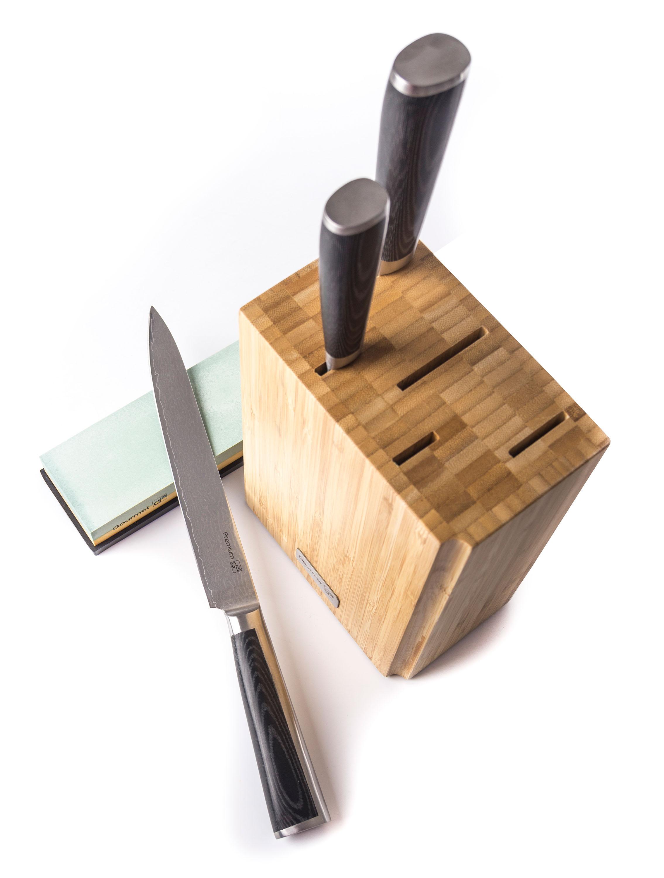 Sada nožů G21 Damascus Premium v bambusovém bloku, Box, 3 ks + brusný kámen