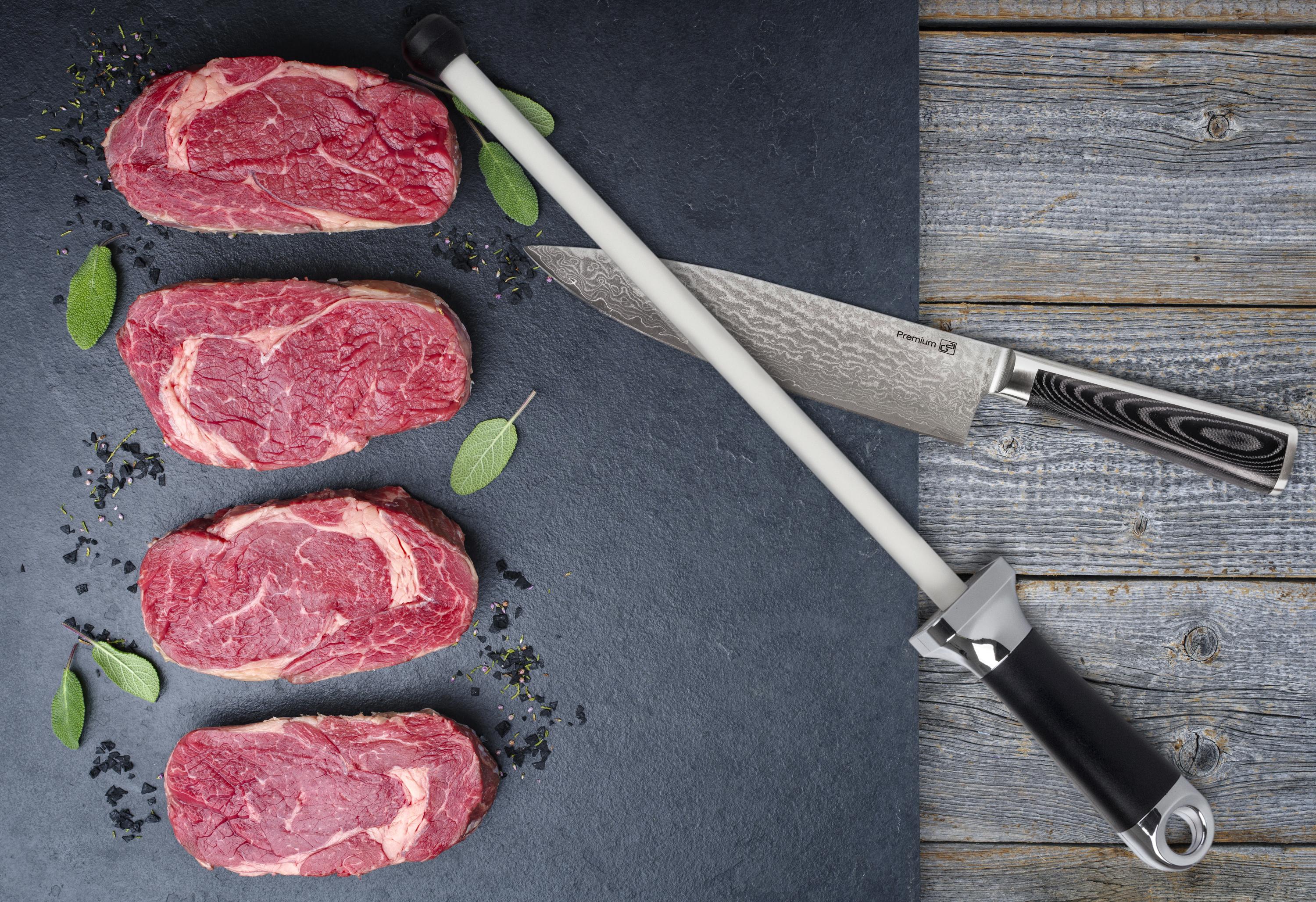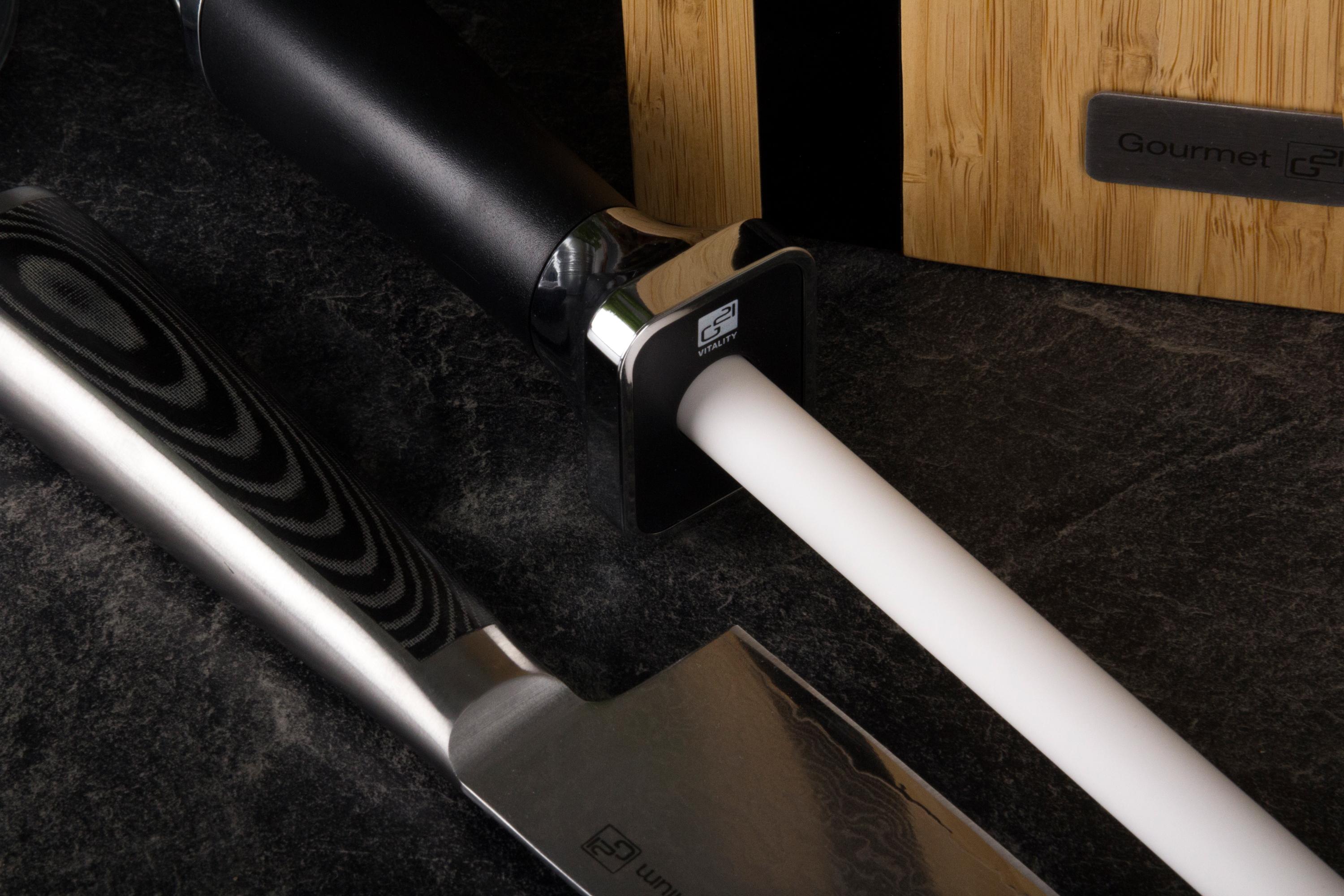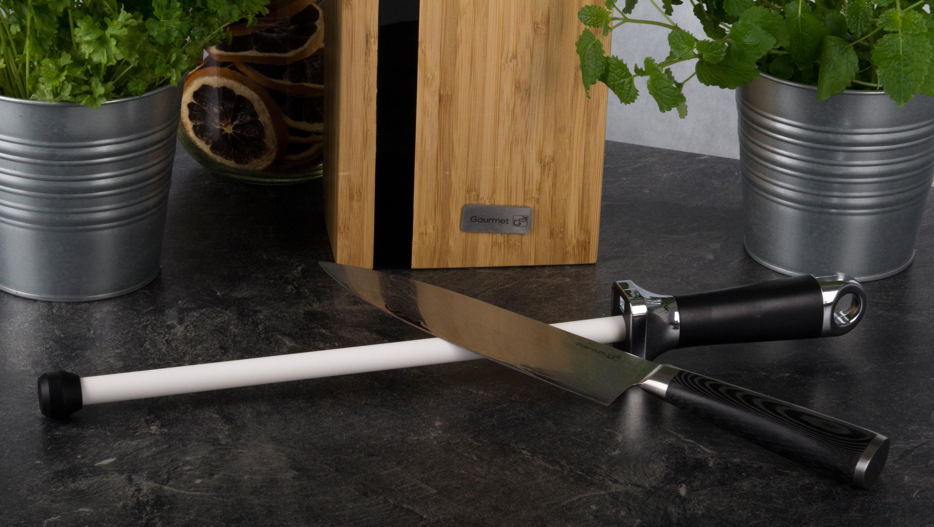 Pro jemné obtažení ostří, k finálnímu dočištění nože po broušení brusným kamenem nebo k dobroušení nožů použijte tuto špičkovou ocílku z velmi tvrdé keramiky (85 HRC).