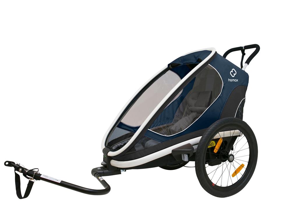 HAMAX Outback One - jednomístný vozík za kolo vč. ramena + kočárkový set - Navy/White, polohovací