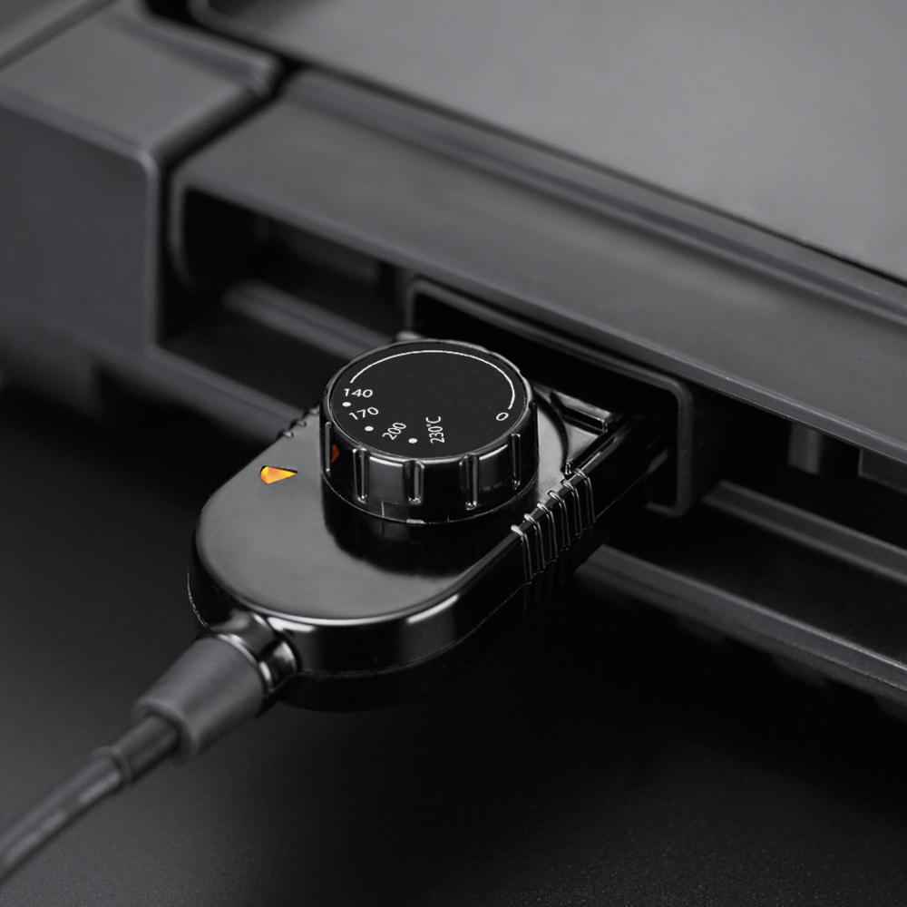Díky zabudovanému ohřívacímu tělísku se plotýnka zahřeje ihned po zapnutí. Tato plotýnka má také nastavitelnou kontrolu teploty, s kterou budete mít pod kontrolou přípravu pokrmů.