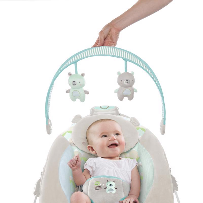 Inovativní lehátko napodobující přirozený pohyb v maminčině náručí, díky kterému bude mít miminko pocit, že je v náručí maminky a maminka tím získá čas potřebný k odpočinku. Lehátko představuje unikátní kombinaci funkčnosti a praktičnosti. Textilie DreamComfort podporuje proudění vzduchu a pomáhá udržovat pohodlné prostředí pro miminko. Odnímatelná opěrka hlavy, integrovaný polštářek, melodie, zvuky přírody a vibrace pro uklidnění miminka. - pohodlná sedací část je navržena tak, aby poskytla maximální komfort miminku - sedací část obsahuje odnímatelnou opěrku hlavy, integrovaný polštářek a textilie podporující proudění vzduchu pro pohodlné a svěží prostředí - lehátko je vybaveno technologií Automatic Bounce™, která vytváří jemný pohyb nahoru a dolů, což simuluje přirozený pohyb v maminčině náručí po dobu 30 minut - na výběr jsou 2 režimy pohupování – jemné nebo výraznější pohupování - technologie HybriDrive™ zaručí dvakrát delší výdrž baterií oproti obyčejným lehátkům - 8 melodií a 3 přírodní zvuky, včetně bílého šumu - odnímatelná hrazdička se 2 hračkami pro snadnější přístup k miminku - 3-bodový bezpečnostní pás - lehátko vyžaduje použití 3 c (LR14) baterií, které nejsou součástí balení - textilie lze prát v pračce - protiskluzové nožičky - lehátko je vhodné pro děti od narození až do 9 kg Rozměry produktu: 56,5 cm x 46,4 cm x 13,4 cm.