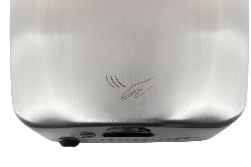 Provoz osoušeče MINI je zcela bezkontaktní. K sepnutí přístroje dojde okamžitě po přiblížení rukou k přístroji. Povrch z leštěného nerezu má zaoblené hrany pro snadnou údržbu.